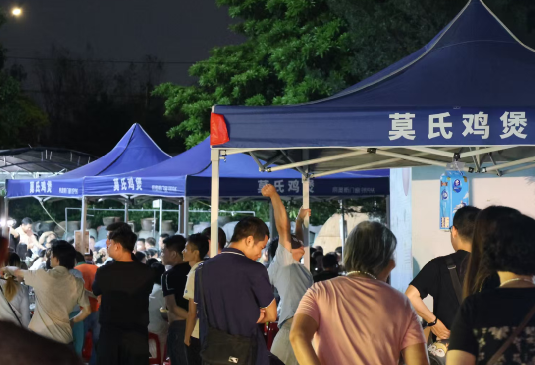 “政府免费搭棚,人流大、生意好,帮大家一起带动经济。”在两公里外经营薄撑的摊主张叔被政府“请”到了美食区,正熟练地翻动饼皮。不远处,志愿服务亭里凉茶、花露水、雨衣随时取用;两座崭新的临时公厕悄然立起。