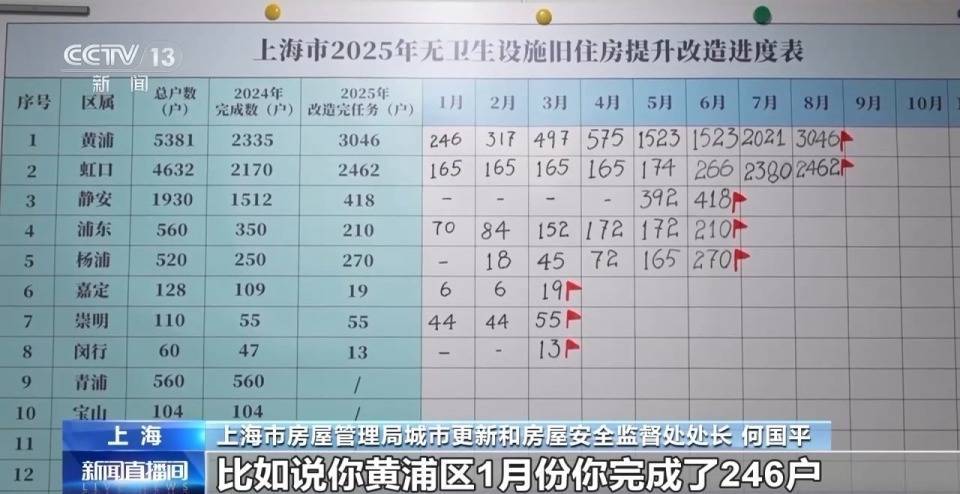 上海市房屋管理局城市更新和房屋安全监督处处长 何国平:具体实施过程中,我们把改造的进度统计到月,按月统计每个区完成了多少众团优配,如黄浦区1月份完成了246户,或者是其他区多少户,便于市区能形成合力。