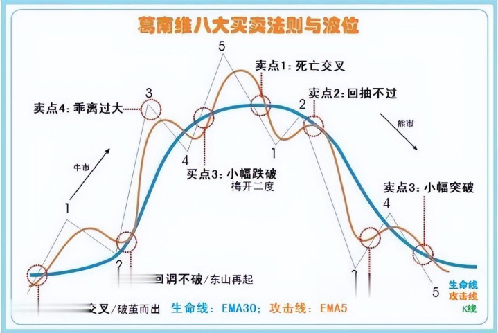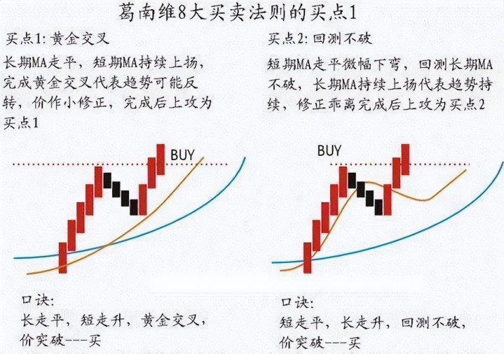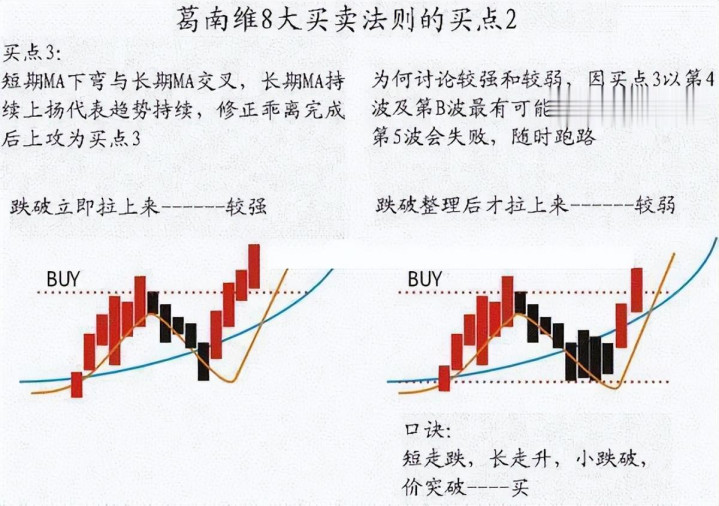 交易计划包括试探、建仓、加仓、减仓、清仓等,怎么制定交易计划,可以根据下面这张葛兰维八大法则图来制定。