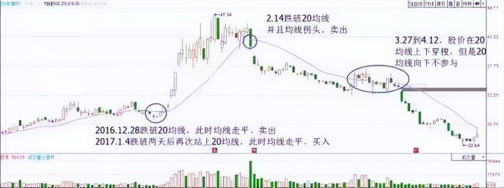 当20均线在高位走平时需要警惕,一旦收盘时股价跌破20日均线连续两日收盘价跌破20日均价,20日均线由走多转走平或走空。要清仓卖出。