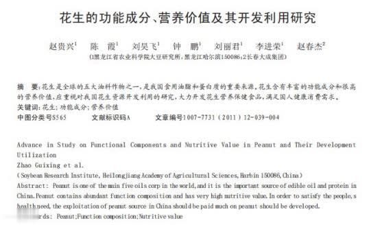 参考资料:[1]赵贵兴.花生的功能成分、营养价值及其开发利用研究搭搭网,安徽农学通报(下半月刊),2011-06-25